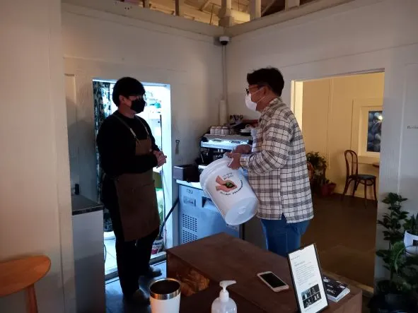 5개의 카페에서 발생되는 커피찌꺼기를 모아, 퇴비를 만들고, 시민들에게 다시 돌려드리겠습니다.