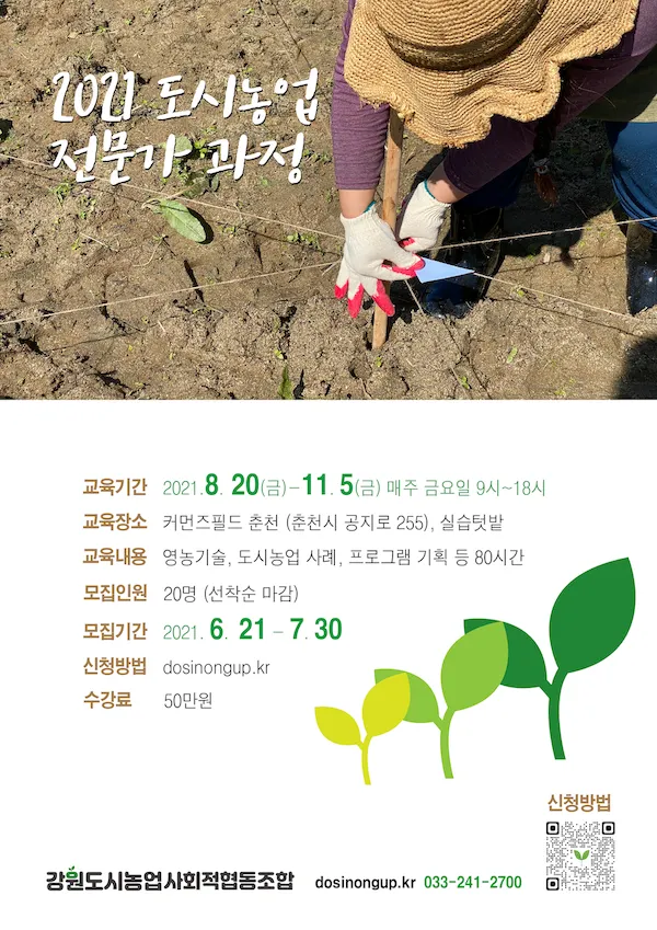 - 신청방법 : 강원도시농업사회적협동조합 홈페이지 https://www.dosinongup.kr